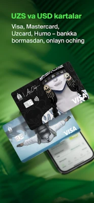 — Visa, Mastercard, UnionPay, Uzcard, Humo va Virtual Visa kartalarini darhol ochish
