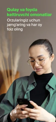 Ilovani yuklab oling va mablag‘laringizni oson boshqaring. Bu sizning mobil bankingiz: pul o‘tkazmalari, omonatlar va kartalar bilan to‘liq boshqaruv.