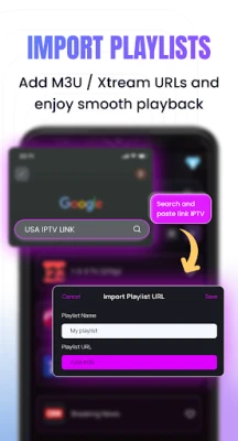 Import playlists with a simple URL, mark favorites, and organize your content efficiently.