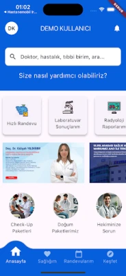 Kolay randevu alma Kapsamlı sağlık paketleri Tüm sağlık bilgilerinizi tek bir yerde toplama Uzman doktorlara hızlı erişim Kullanıcı dostu arayüz 7/24 bilgi ve destek hizmetleri Sağlığınızı güvence altına almak artık çok daha kolay ve hızlı!