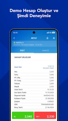 İş Varant Mobil uygulaması ile varant piyasasını takip edebilir, hesaplama araçlarını kullanarak İş Yatırım varantlarına dair detaylı analiz yapabilir, akıllı varant filtresi ile istediğiniz dayanak varlık için varantları karşılaştırabilir ve en uygun varantı seçebilirsiniz. Demo hesabı üzerinden ücretsiz canlı verilerle işlem gerçekleştirebilirsiniz.