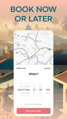 Select your destination and book our reliable car service in seconds, all within the app. It's designed for ease, whether you're a long-time local or a first-time visitor.