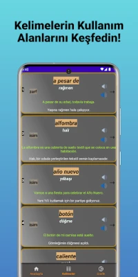 Ayrıca, öğrendiğiniz kelimeleri kelimeler menüsünden tekrar edebilirsiniz. İspanyolca'yı hızla ve etkili şekilde öğrenmek için ideal bir uygulama!