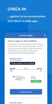 Fai il check-in dal tuo smartphone usando il codice di prenotazione (PNR) o il numero di biglietto o il codice Volare e salva le tue carte d’imbarco nel Wallet o condividi per e-mail o via SMS.