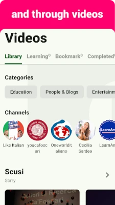 + Speaking and recording: listen and repeat after native Italian speakers, then start recording and replay your speech later.