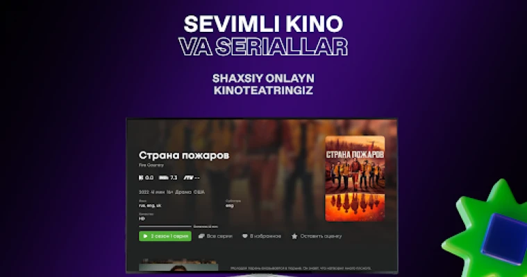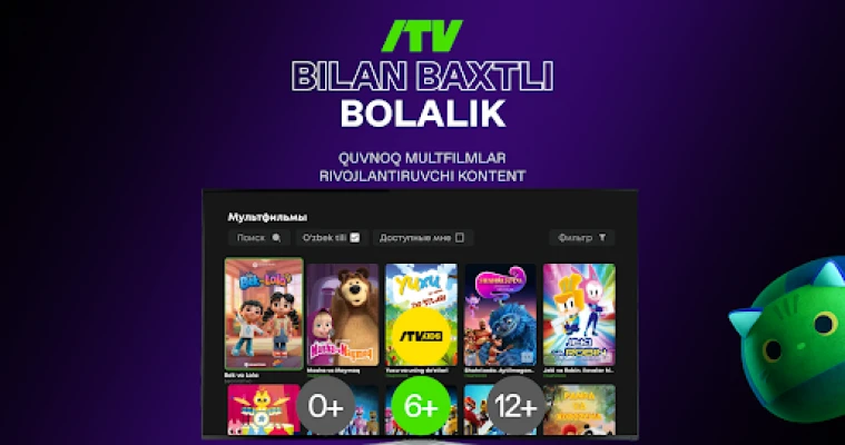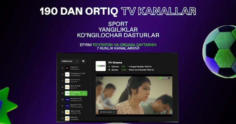 Широкий выбор узбекских и зарубежных фильмов, сериалов и мультиков
