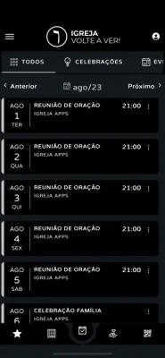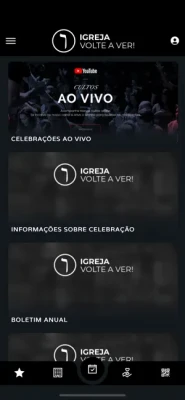 * Conteúdos (Áudio/Vídeo): Você poderá visualizar e ouvir os conteúdos da Igreja que estiverem disponíveis no App;