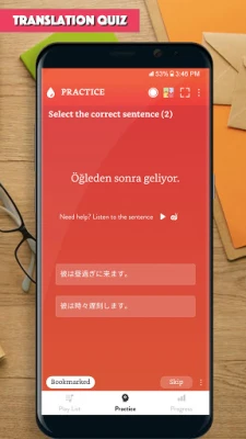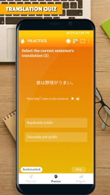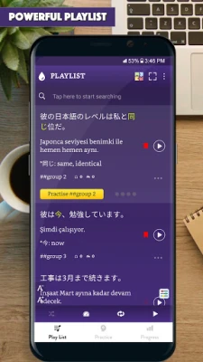 All the app's features are designed to help you learn to make Japanese sentences and improve the main skills: Listening to a sentence, writing (making) a sentence correctly, speaking a sentence/a phrase correctly.