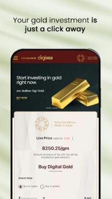 Jos Alukkas Digital Gold lets you begin your gold journey with just ₹100. Whether you're looking to buy, sell, or save, our platform provides unmatched flexibility. You can even convert your gold balance into stunning jewellery, ensuring that your investment not only grows but also brings beauty into your life. Enjoy the ease, security, and trust that only Jos Alukkas can offer, with the freedom to build your gold wealth effortlessly.