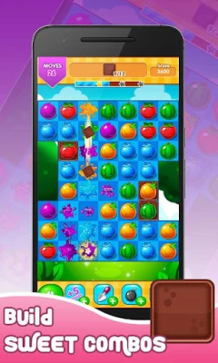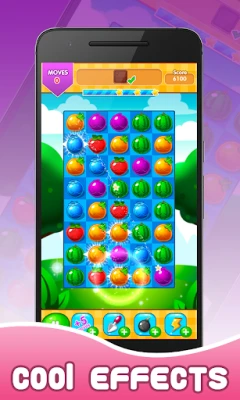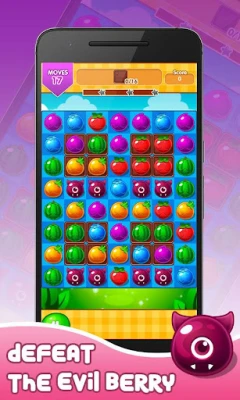 Juice King: Match 3 Puzzle is a completely free to play match 3 type puzzle game, with hundreds of fruity levels and sweet stages that span the colorful world of Juice King: Match 3 Puzzle and the kingdom of fruits. The fruity kingdom of Juice King: Match 3 Puzzle is home to the sweetest fruits in the world. Tender Strawberries, sugary Watermelons, juicy Oranges, ripe Blueberries and yummy Prunes are all in danger from the Evil Berry who has been haunting them since they were seedlings. Lead the fruits in the war against the Evil Berry and help them go sword to sword in Juice King: Match 3 Puzzle. Plan and select the right moves to beat the levels with the best possible score and minimum number of moves to stay one step ahead, all the way.