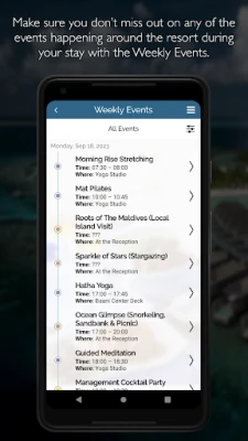 - View the entertainment schedule for the upcoming week;