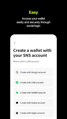 #1. Login with your Social Media You can signup and login to Kaia Wallet easy with your SNS such as Google, LINE, Naver, Kakao and Apple.