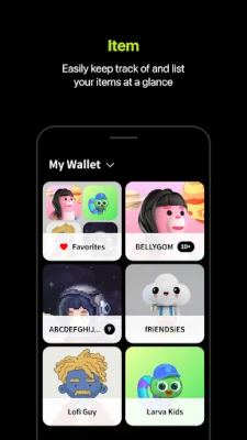 #2. Keep your Items at a glance You can easily keep track of and list your digital items such as coin, token, and NFTs in Kaia Wallet.