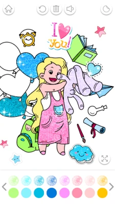 ✔ Open kawaii game and select one kawaii coloring page from "Kawaii Coloring Book Glitter"