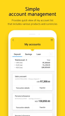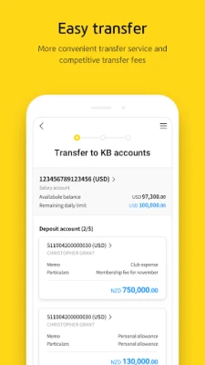 - Transfer : To KB Bank/To Other Banks/Currency Exchange/Overseas Transfer
