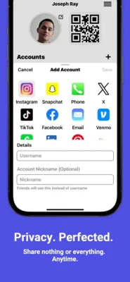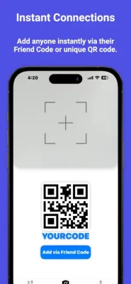 Instant Connections. Add anyone instantly via their Friend Code or unique QR code.