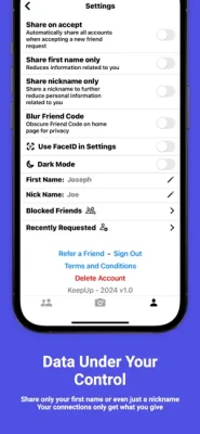 Privacy. Perfected. Share nothing or everything, anytime, with KeepUp's unique toggle-to-share feature which puts sharing social media accounts or personal information just one tap away.