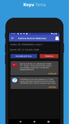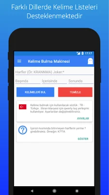 Bu uygulama bir oyun değil, kelime türetme aracıdır.