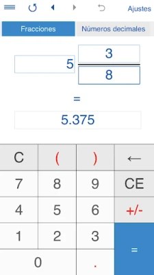 Ondalık sayılar kesirler dönüştürmek için, seçin "Kesirler", giriş kesir veya karışık numarası ve "=" butonuna tıklayınız.