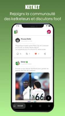 Viens discuter foot et partage avec nous tes analyses. Ketket te met dans les habits du coach et te donne la possibilité d'élaborer ton classement en créant ton onze. Fais des choix forts et assume les en les publiant sur les réseaux sociaux. Défie tes amis à chaque grand match et montre tes capacités de manager avec le ketket live.
