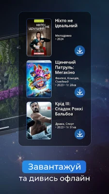 - функція завантаження контенту - для можливості перегляду улюблених серіалів та фільмів без доступу до інтернету;