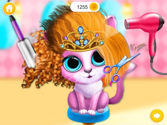 · Comb, curl and straighten cat Kiki’s and dog Fifi’s colorful hair!