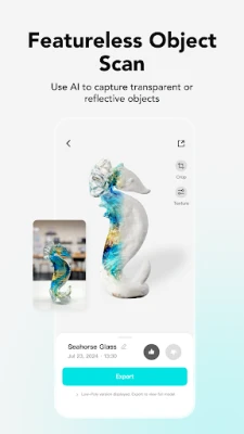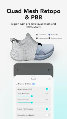 • Formats: Export in OBJ, STL, FBX, GLTF, GLB, USDZ, PLY, XYZ, compatible with Blender 3D, Unreal Engine, Autodesk Maya, etc.