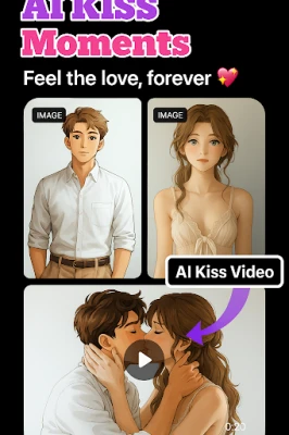 Yalnızca kalbe dokunan öpücük ve sarılma animasyonları oluşturmaya adanmış, yapay zeka destekli en üst düzey video uygulaması olan Kissifly ile insani bağın sıcaklığını yakalayın. İster tatlı bir kucaklaşma ister sevgi dolu bir öpücük olsun, yalnızca birkaç dokunuşla duygularınızı hayata geçirin.