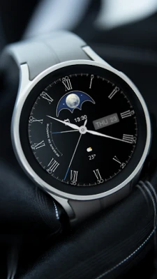 Bu klasik ve özelleştirilebilir Saat Yüzü ile akıllı saatinizin zarafetini yükseltin. Sizin için mükemmel Saat Kadranını oluşturmak için ibreleri, kadranları, ay evresini, takvimi ve pil komplikasyonlarını seçin.