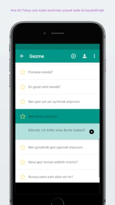 Bütün lang cümleler ve kelimeler fonetik ve orjinal yazım şeklinde uygulamada bulunmaktadır.Cümleler ve kelimeler anadili olan kişilerle kaydedilmiştir.