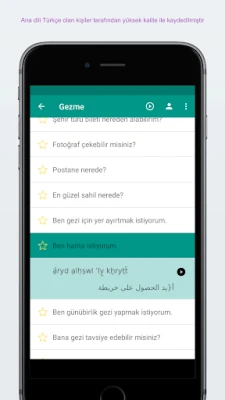 Bütün arapça cümleler ve kelimeler fonetik ve orjinal yazım şeklinde uygulamada bulunmaktadır. Cümleler ve kelimeler anadili olan kişilerle kaydedilmiştir.
