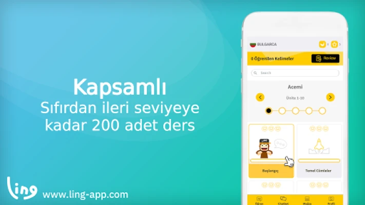 Sıradan bulgar dili dersleri sıkıcı, soluk ve hiç eğlenceli olabilir. Ling ile sizlere bulgar nasıl okunacağını, yazılacağını ve konuşulacağını öğretmek için bulmacalar, oyunlar, meydan okumalar ve testler kullanarak öğrenme sürecini eğlenceli hale getirdik!