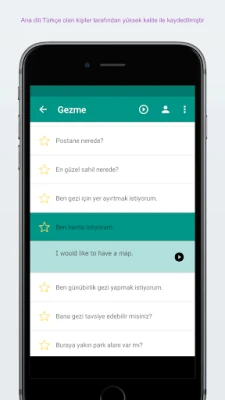 Bütün lang cümleler ve kelimeler fonetik ve orjinal yazım şeklinde uygulamada bulunmaktadır.Cümleler ve kelimeler anadili olan kişilerle kaydedilmiştir.