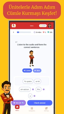 Adım adım ilerleyen ünitelerle cümle kurmayı, grameri ve günlük konuşmaları kolayca öğrenin. Her ünite, pratik ve gerçek hayata uygun cümlelerle doludur.