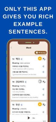 Doğru telaffuzu duymak hem dinleme testleri hem de konuşma becerileri için hayati önem taşır. Uygulamamızdaki her kelime ve örnek cümle, anadili Korece konuşanlar tarafından kaydedilmiş kristal netliğinde seslendirmeler içerir.