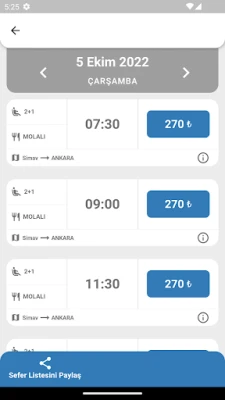 Uygulama üzerinden; seferleri görebilir, bilet alım işlemlerinizi yapabilirsiniz.