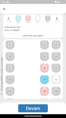 - İstediğiniz saatteki seferi seçebilirsiniz.