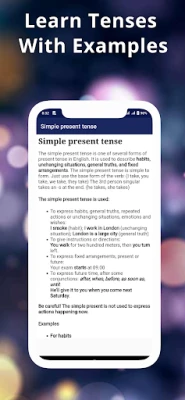 The app also explains the English Tense System in a simple, easy-to-follow way. Learn how to use past, present, and future tenses accurately in your conversations.