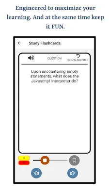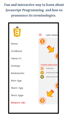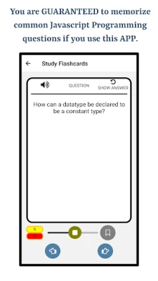 The app will help you learn the correct pronunciation of terminologies used in Javascript Programming Language using English language. Following are the main features of this app 1. Supports pronouncing Javascript Programming Language terminologies in English Language 2. Uses Text to Speech Engine for Audio Functionality 3. Quizzes 4. Study Mode 5. Bookmarking Study Flashcards and Quiz Questions 6. Progress Indicators for Every Chapter 7. Visualization for Overall Progress