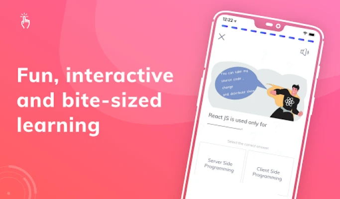 With the “Learn React development” app you can make code learning easy and fun.