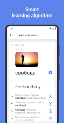 • To learn Russian words, all you need to do is swipe handy flashcards with pictures and example sentences - helpful mental shortcuts to build your vocabulary and understand the nuances of word meaning and how these words are used in real practice.