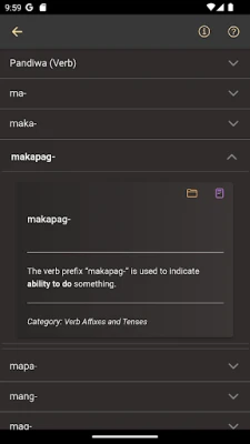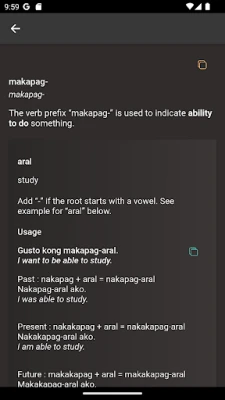 Learn how to construct basic and advanced Tagalog sentences by familiarizing Tagalog affixes, nouns, verbs, adverbs, and adjectives and more. Learn Tagalog grammar in order for you to create sentences on your own. The structure of this app is teach you some Tagalog words first before greetings then diving into grammar.