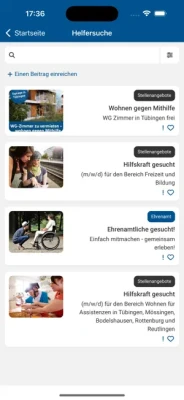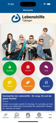 Die App rund um die Lebenshilfe Tübingen e.V.Ziel der Lebenshilfe Tübingen ist es, Menschen mit Behinderung ein eigenständiges und selbstbestimmtes Leben zu ermöglichen und ihre Angehörigen und Freunde zu unterstützen. Die kostenlose App der Lebenshilfe Tübingen enthält u.a.:- Direkten Kontakt zum Team der Lebenshilfe- Informationen zu unseren Angeboten- Informationen, Gesuche und Austausch für Ehrenamtliche- Helferbörse- Aktuelle Termine / Kalenderfunktion- Chaträume für regelmäßige Angebote- Unkomplizierte Verbindung zwischen Familie, Lebenshilfe und Ehrenamtlichen- Wichtige Dokumente zum Download- Bilder und Impressionen- Und vieles mehr!