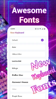 Choose from different fonts to change how your keyboard looks and feels. Make your typing experience unique by picking the font that suits your style.
