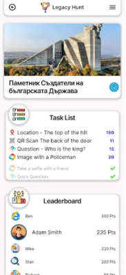 Each Hunt is a curated adventure consisting of various interactive Tasks designed to test your observation, knowledge, and exploration skills. Navigate your surroundings, solve clues, and complete challenges to earn points.
