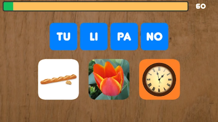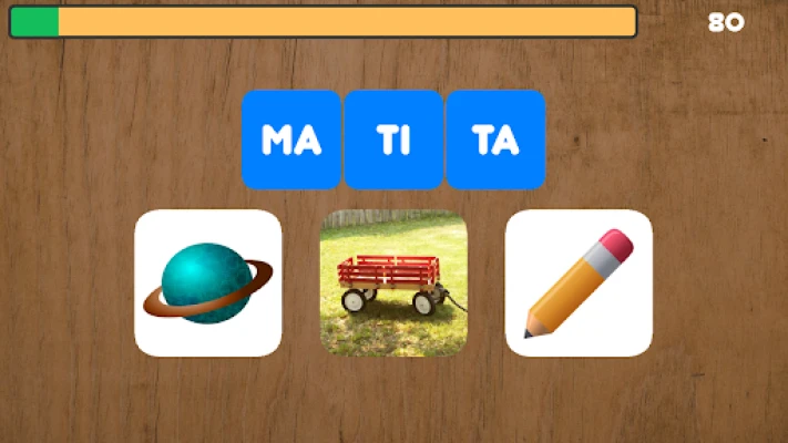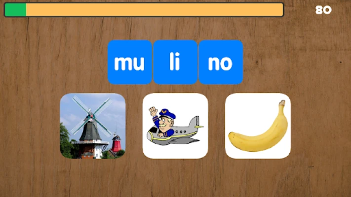 Leggi la parola suddivisa in sillabe e seleziona l'immagine corrispondente. Quando selezioni l'immagine giusta puoi passare alla parola successiva. Tantissime parole diverse con cui giocare e imparare, tutte formate da due, tre o quattro sillabe. Vantaggi rispetto alla versione gratuita: 1) Assenza di inserzioni pubblicitarie 2) Parole di tre e quattro sillabe oltre a quelle di due sillabe