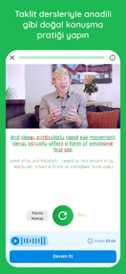 - Standart telaffuz: Gelişmiş ses tanıma teknolojisi, telaffuzunuzu geliştirmek için analiz eder ve ayrıntılı geri bildirim sağlar.