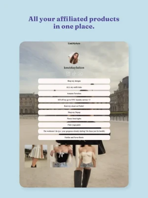 LinkMyStyle is a bio link service with the addition of photos. Each photo has its own page where you can put another list of links. This allows you to neatly link products to each picture instead of having one long list of links.