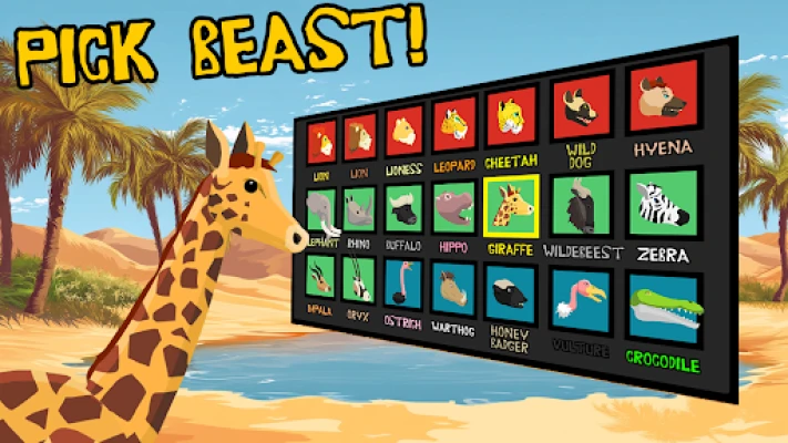 - Play as or fight against up to 70 different primal beasts, from Cheetah and Honey Badger to Giraffe and Oryx.