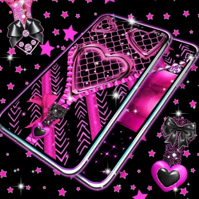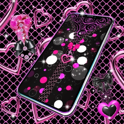 Locker black and pink is a classic lock screen for android phones that unlocks using a zipper. Just drag down the zipper and the magic will happen.Choose a black and pink wallpaper with cute pink bows and sweet diamond hearts for the zipper.Make your lock screen cool with unique pink and black wallpapers with stars, bows, hearts and diamonds !